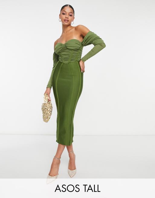 Vestido midi oliva oscuro con dise o bandage estilo cors y escote Very well made.
