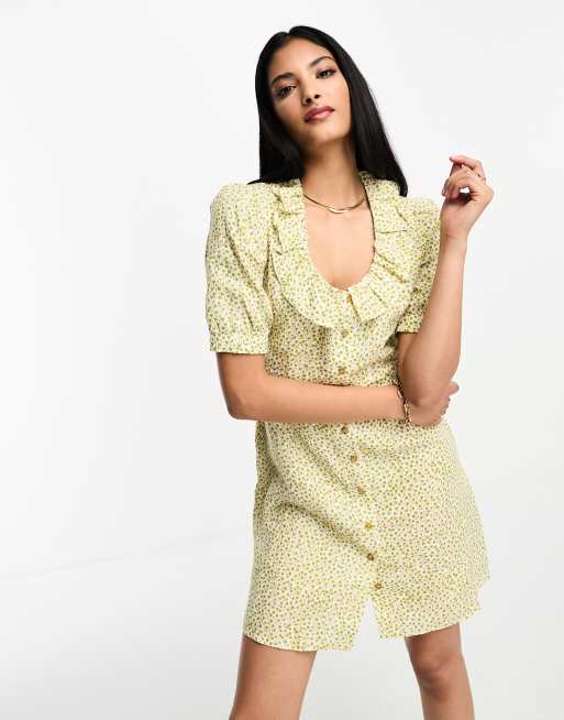 Whistles Linnen jurk met ruches en bloemenprint in geel Very well made.
