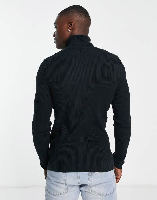 ASOS DESIGN Pull col roul moulant et c tel Bleu marine Very well made.