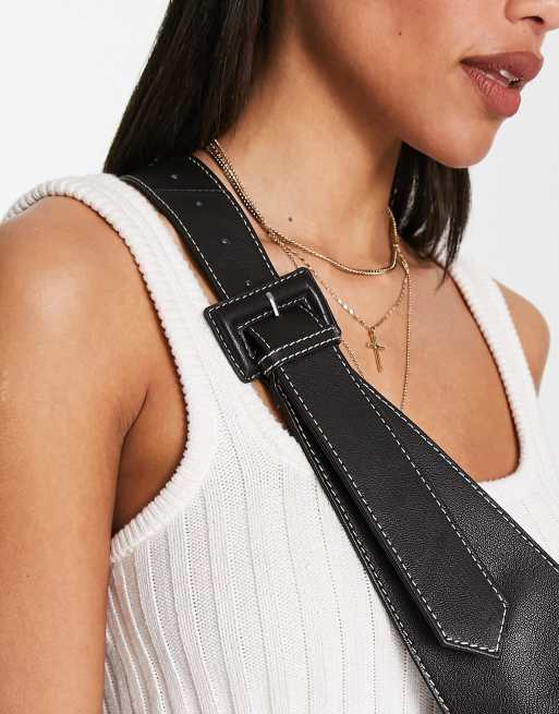 ASOS DESIGN leather curved base crossbody sling bag with contrast stitch in black Very well made.